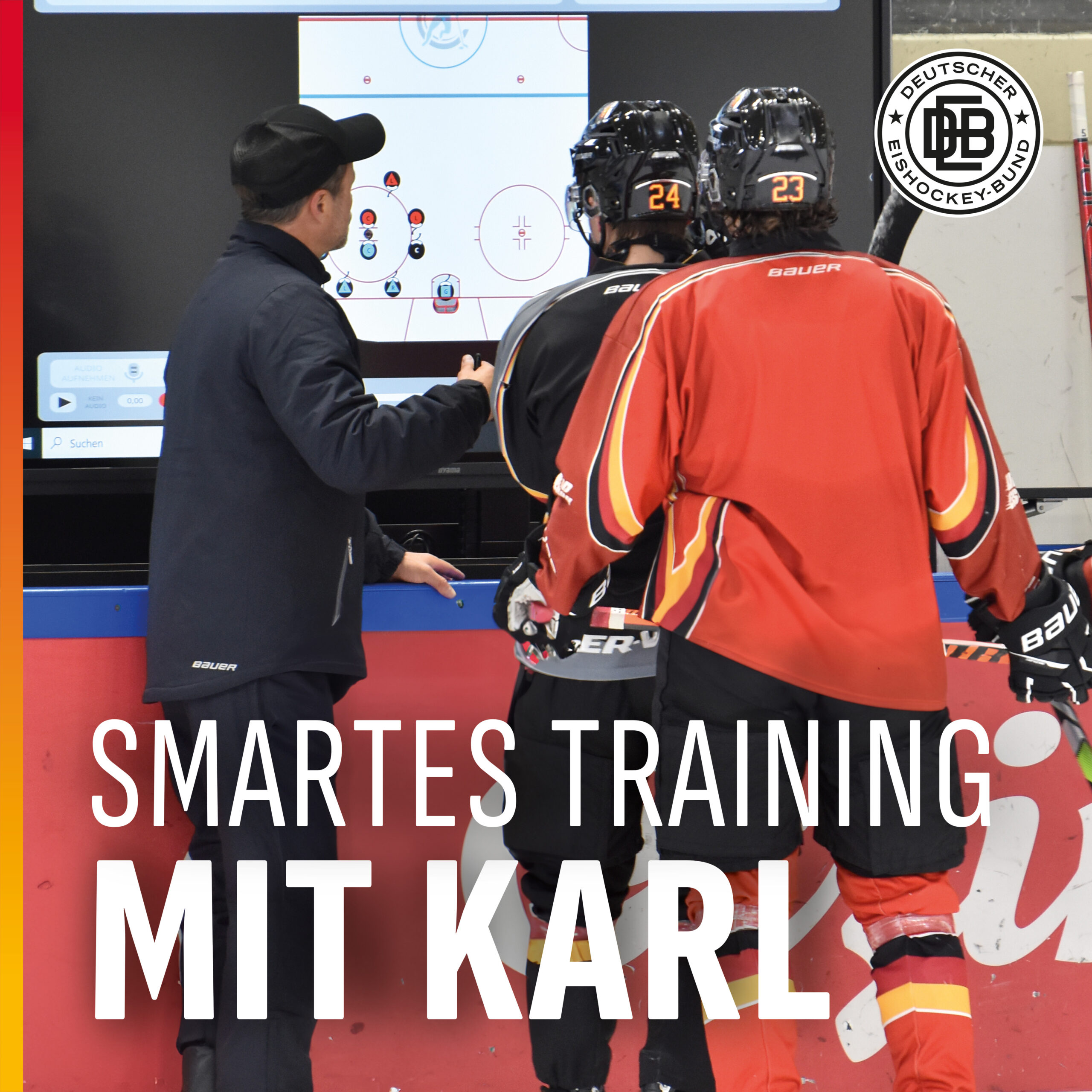 Im Bereich der Trainerausbildung setzt der Deutsche Eishockey-Bund (DEB) bereits seit über zwei Jahren auf die innovative Lösung „Interactive KARL“. Mit dem robusten 75-Zoll-Touchdisplay erhalten Trainer eine neue Möglichkeit, Inhalte visuell, flexibel und direkt am Spielfeldrand zu vermitteln.